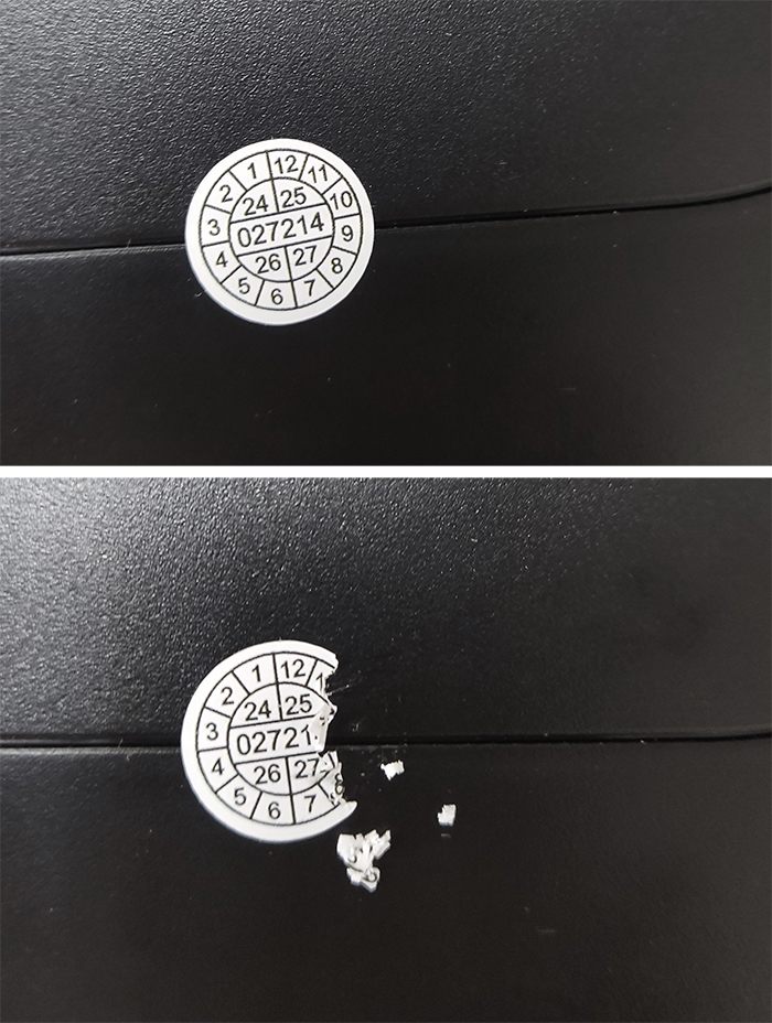 Наклейки для опечатывания. Этикетка повреждается при попытке вскрытия, крошится маленькими кусочками, не возможно снять без повреждения.