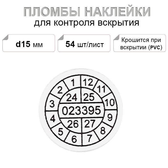 15 мм круг PVC 54шт. пломба наклейка "Скорлупа"