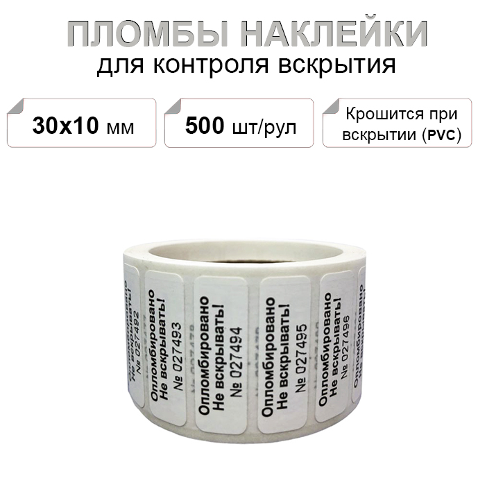 30х10 мм PVC 500шт. пломба наклейка "Скорлупа"