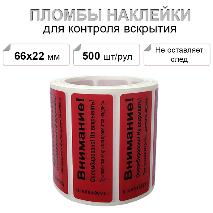 66х22 мм void 500шт. пломба красная БЕЗ СЛЕДА