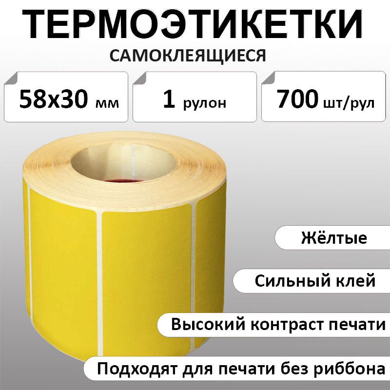 58х30 мм, 700 шт. Термоэтикетки Эко Желтые