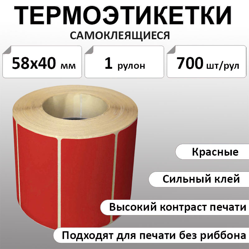 58х40 мм, 700 шт. Термоэтикетки Эко Красные