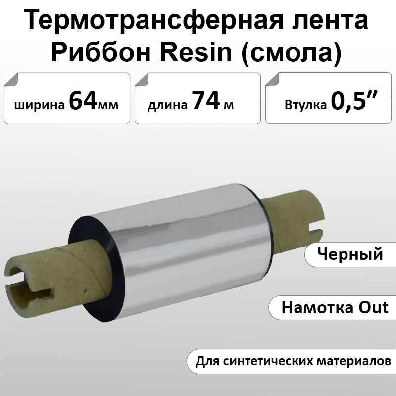 64мм х 74 п.м. resin out черный риббон, термотрансферная лента