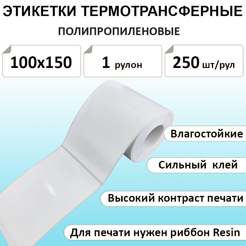 100х150 мм 250 шт. пленка белая Термотрансферные этикетки