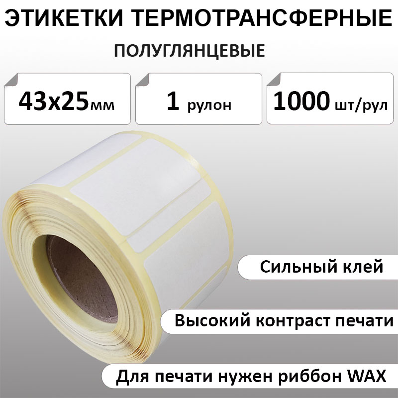 43х25 мм 1000 шт. полуглянец Термотрансферные этикетки