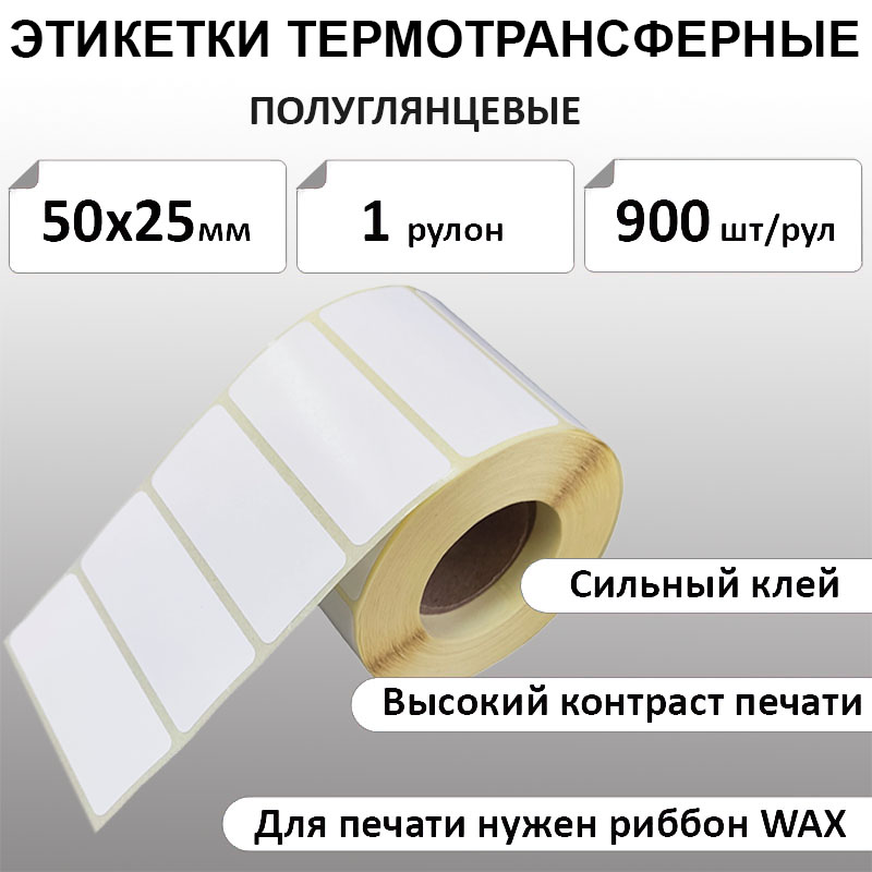 50х25 мм 900 шт. полуглянец Термотрансферные этикетки