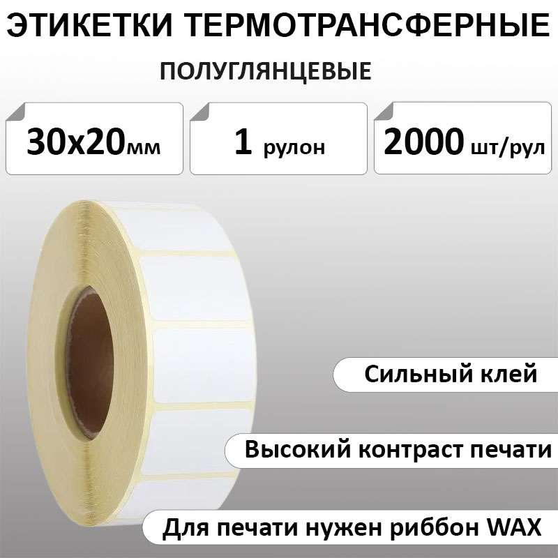 30х20 мм 2000 шт. полуглянец Термотрансферные этикетки